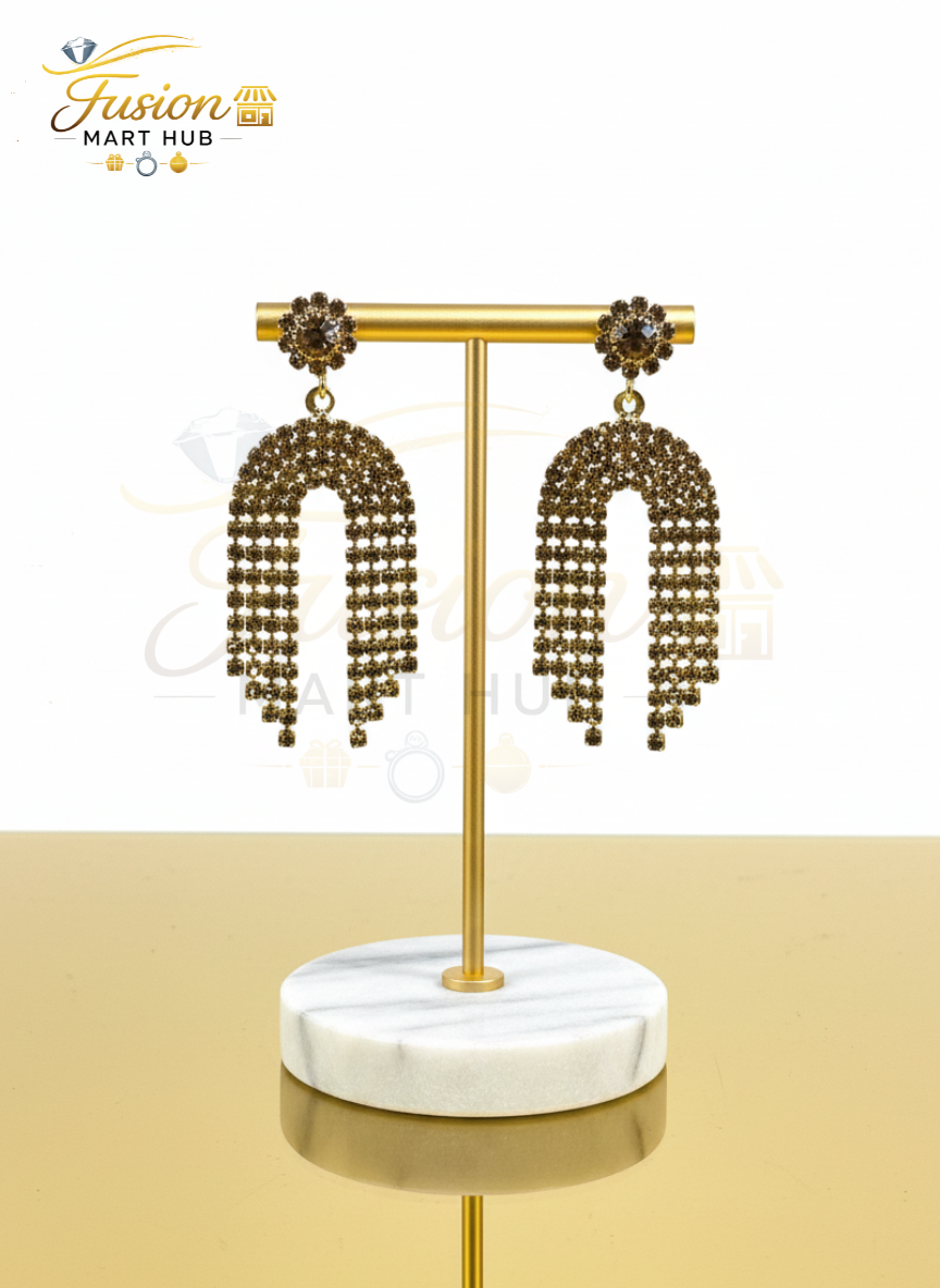 From chic evening wear to casual day ensembles, these statement earrings effortlessly complement any look. The golden crystals reflect light beautifully under natural or artificial settings, making them suitable for morning brunches or candle-lit dinners alike. Durable and lightweight, they offer comfort without compromising your style. Their contemporary yet timeless design ensures they remain trendy for years to come.